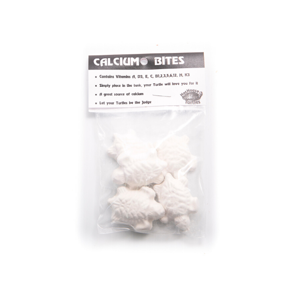 Hot House Turtles Calcium & Vitamin Bites will slowly dissolve and will be absorbed by your turtle as he drinks.
